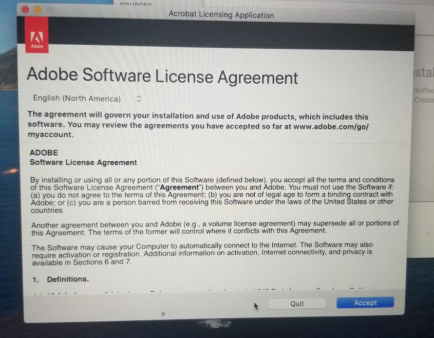 I created a Self Service policy to install that pkg and it installs with no issues, but on first run the user gets the 'SIGN IN REQUIRED' and 'ADOBE LICENSE AGREEMENT'.