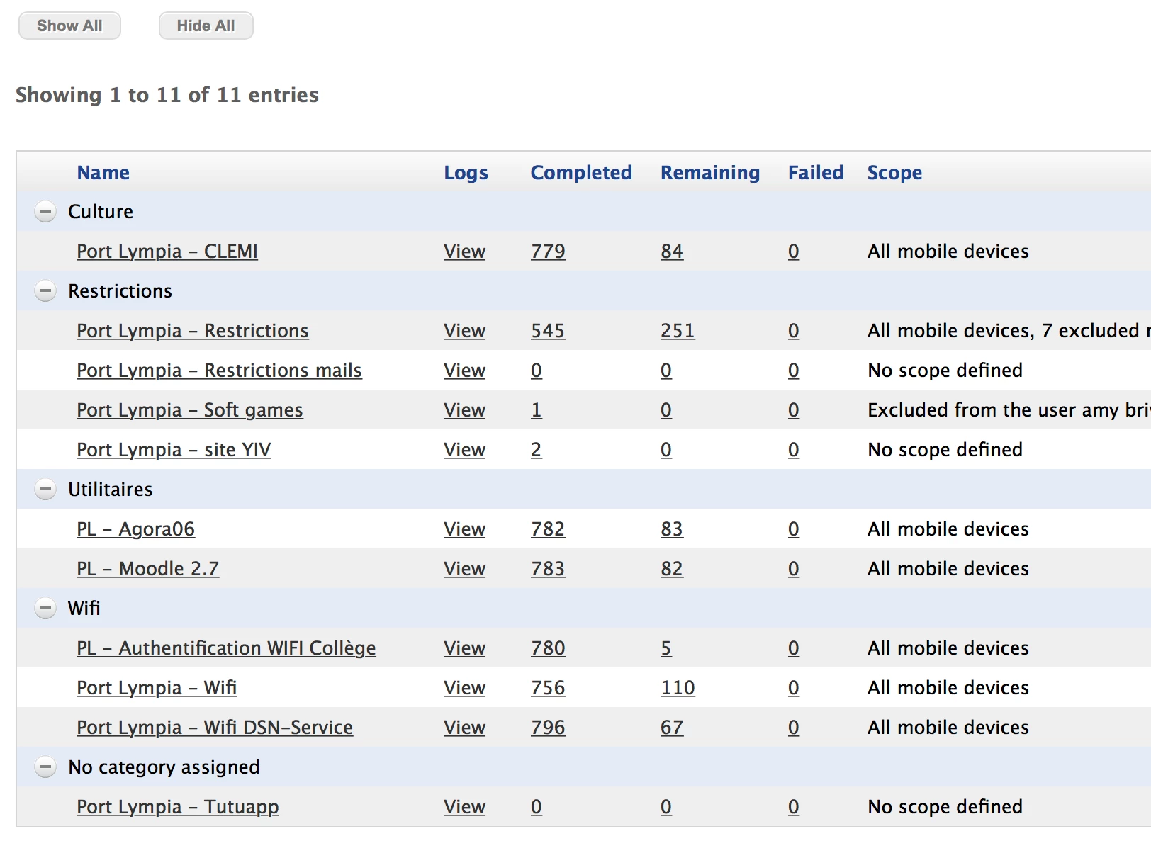 Sur mon profil wifi: "Port Lympia - Wifi" j'ai 110 Devices en statut "Remaining", je voudrais créer un groupe intelligent qui les identifies pour pouvoir les mettre en exclusion et de nouveau leur ré-attribuer... Lors de la création du groupe je ne trouve pas le critère adapté....