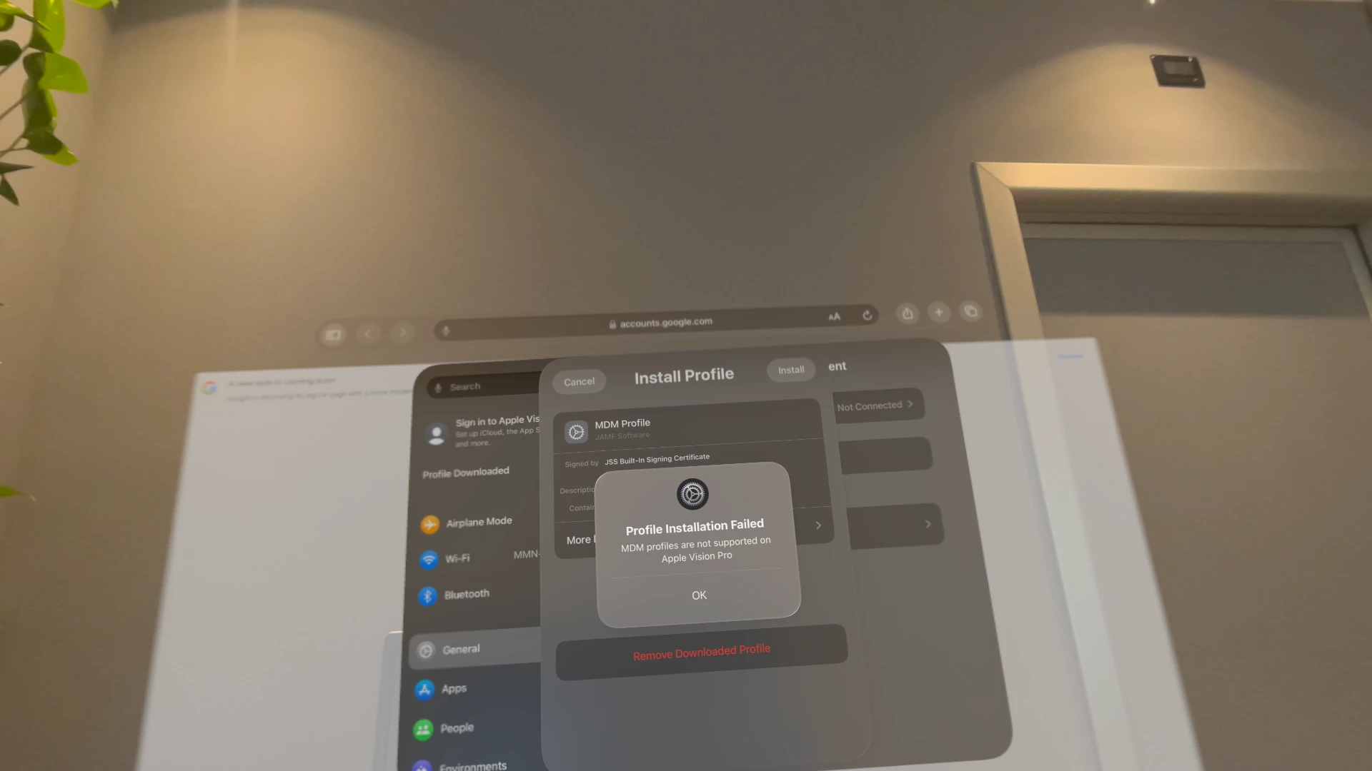 On the Vision Pro that I have, I keep getting an "Enrollment Failed, please try again" message when I try to sign in with a managed Apple ID. Any idea what I might be missing?