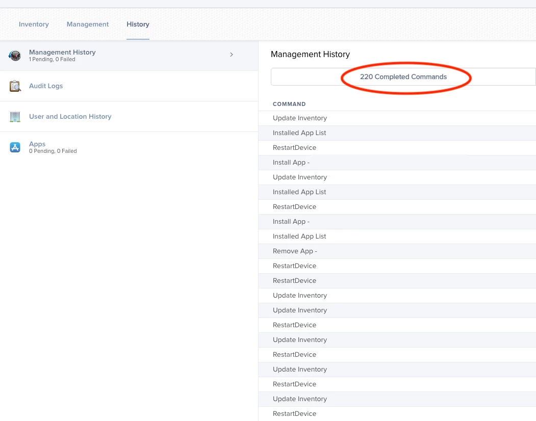 I'm curious if anyone else has seen this, when I check a device from inventory and click the History button in the bottom right (where Delete is located), it is blank: