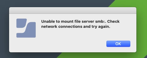 I receive a message 'Unable to mount file server smb:. Check network connections and try again.'