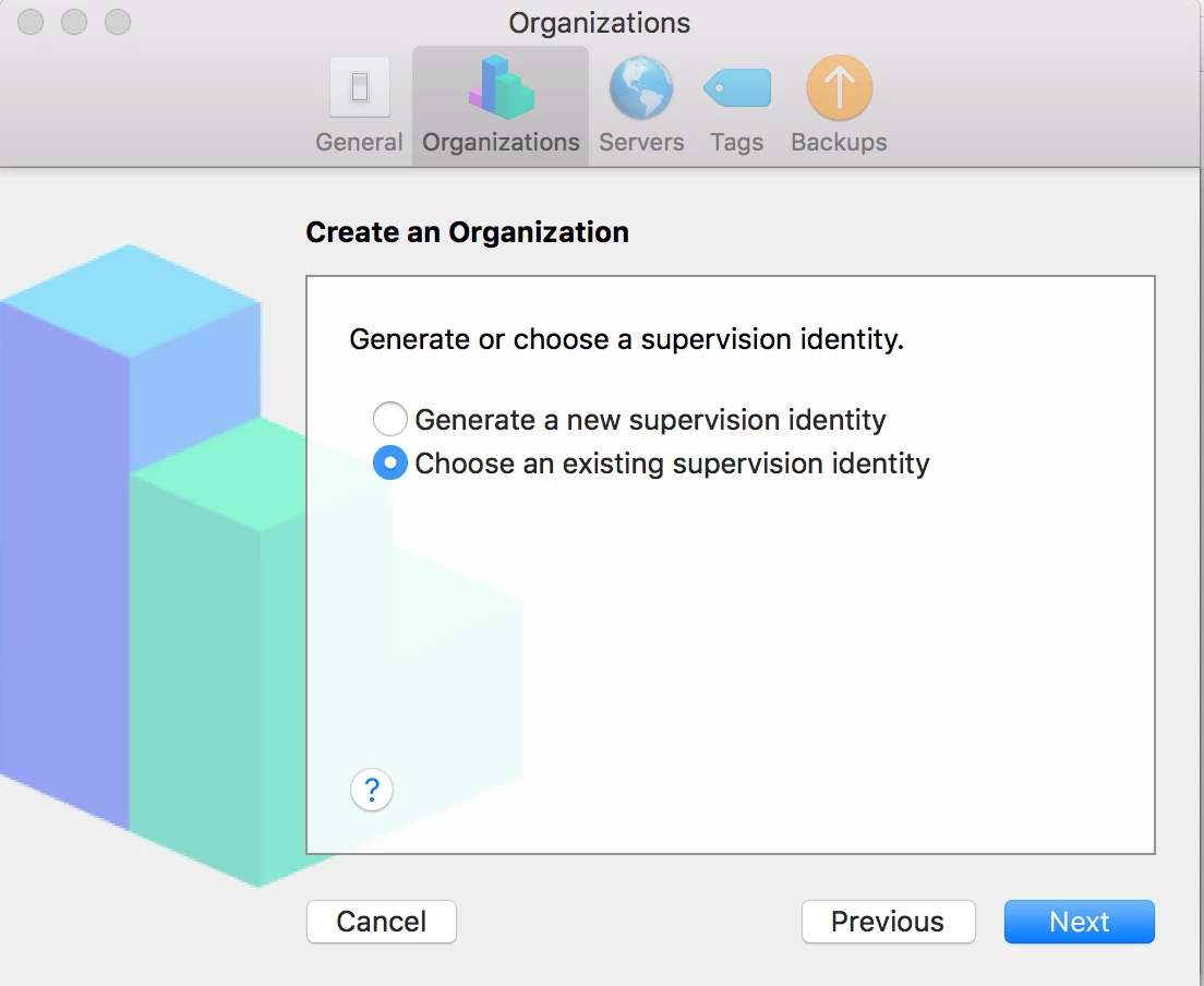 5.) Generate a new Supervision identity or Use an existing Supervision Identity if you have used one before with Configurator. I had one I used before so I selected that one.