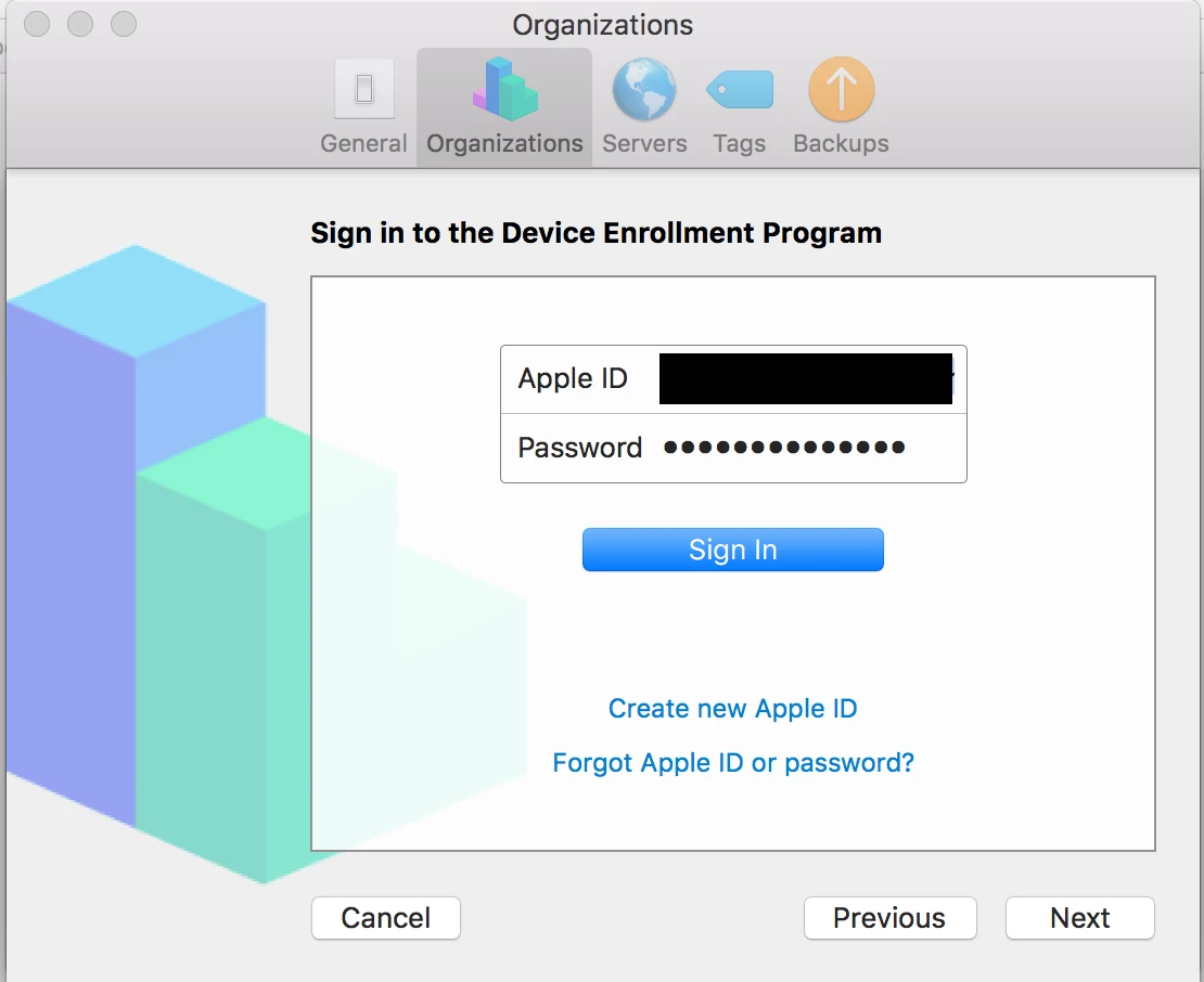4.) Create a New Organization and sign in with your DEP Credentials.