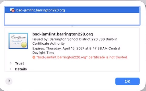 - Verified that the certificate information is correct and matches what is listed in Jamf