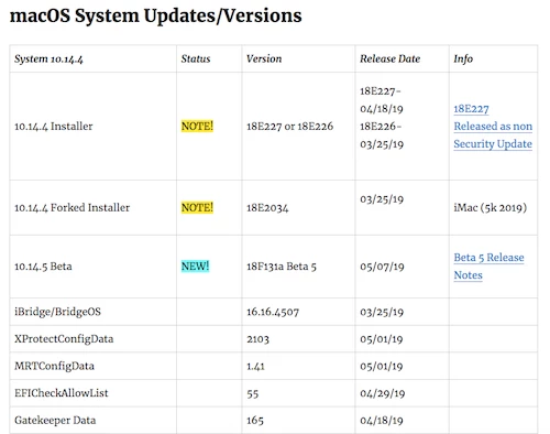 I also include version information about Forked Builds, BridgeOS versions etc.