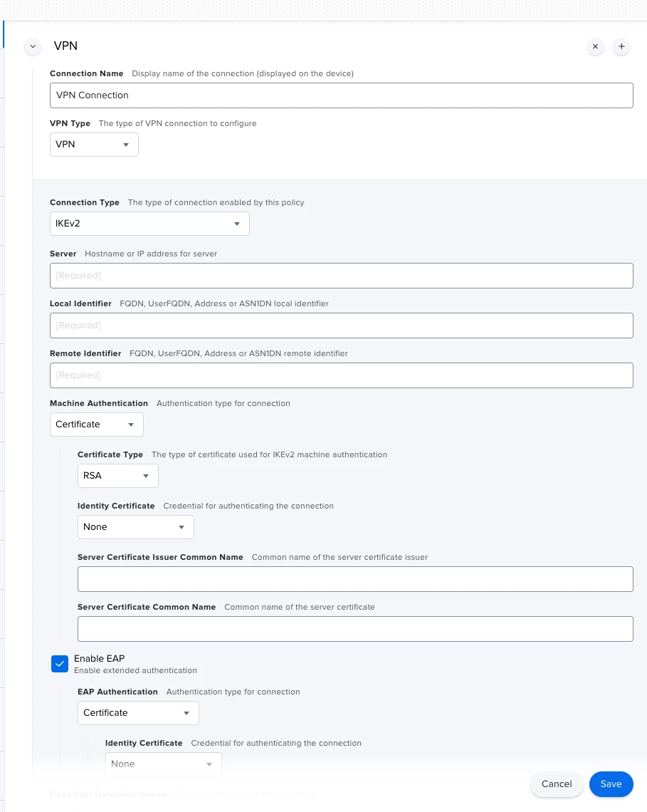 My organization is trying configure Azure VPN, is someone configured prior to share with me how to configure the configuration profile IKEv2 Azure VPN profile.