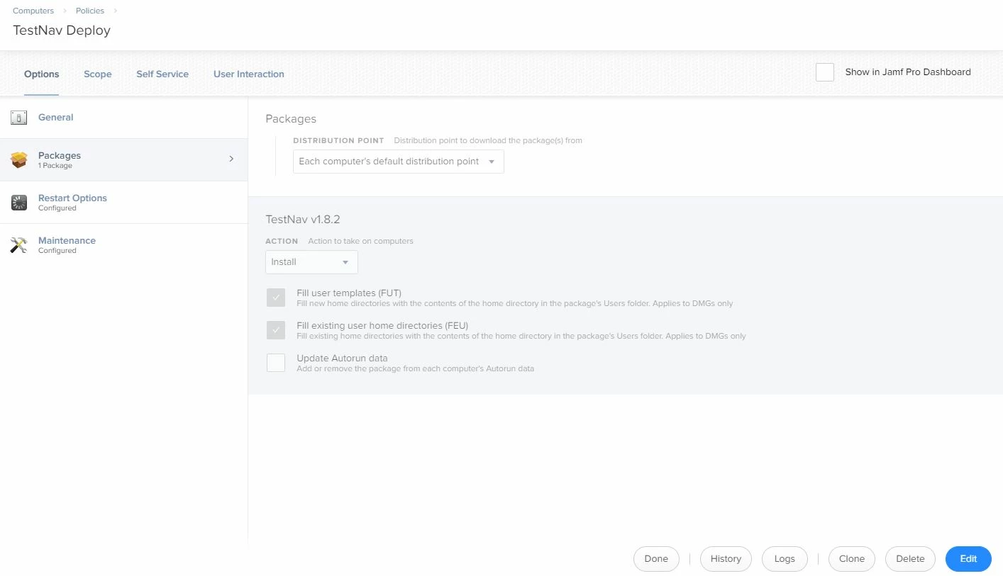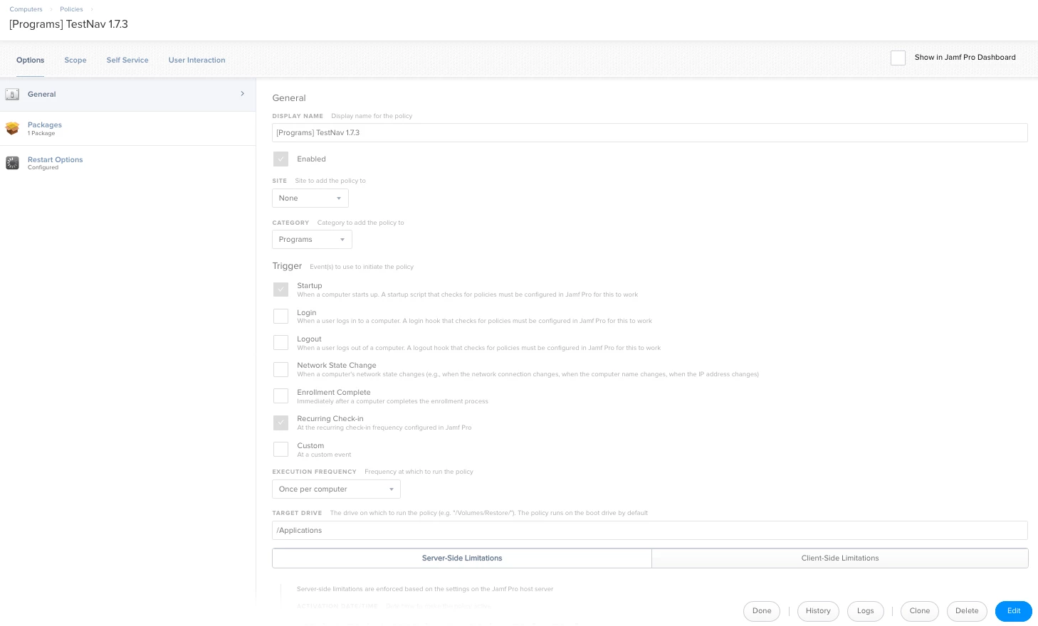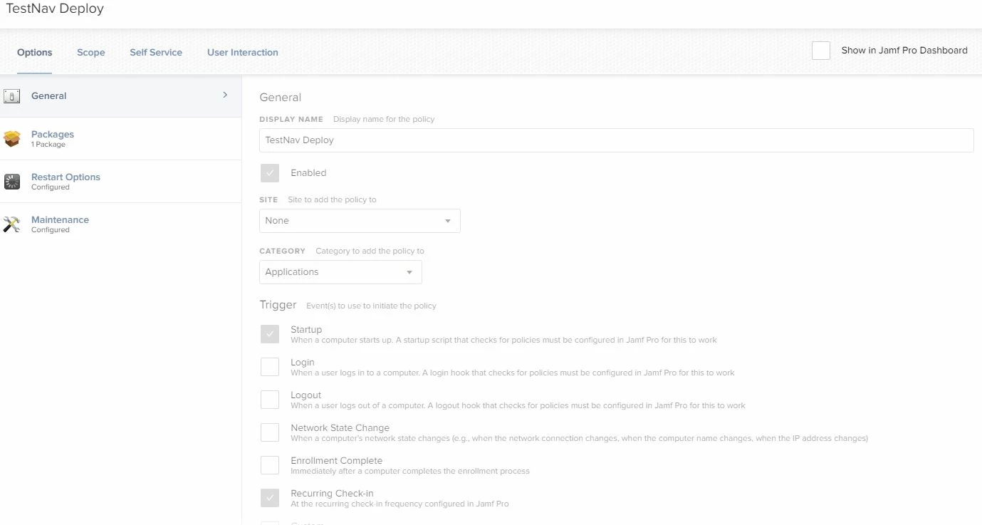 Here's what the Policy for TestNav looks like. We're JAMF Pro hosted on site.