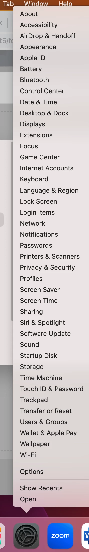 Also I noticed when I click the system preference icon and hold it brings up a long list of items. My M1s don't do this. What do I do?