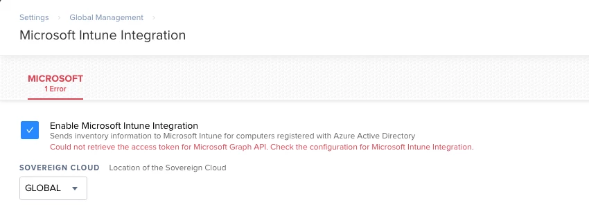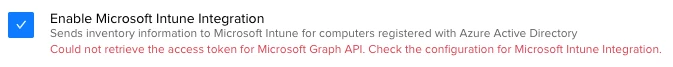 I'm trying to setup Intune, but getting errors before I can even get the connection. I enter the info, but get the error "Could not retrieve the access token for Microsoft Graph API. Check the configuration for Microsoft Intune Integration."