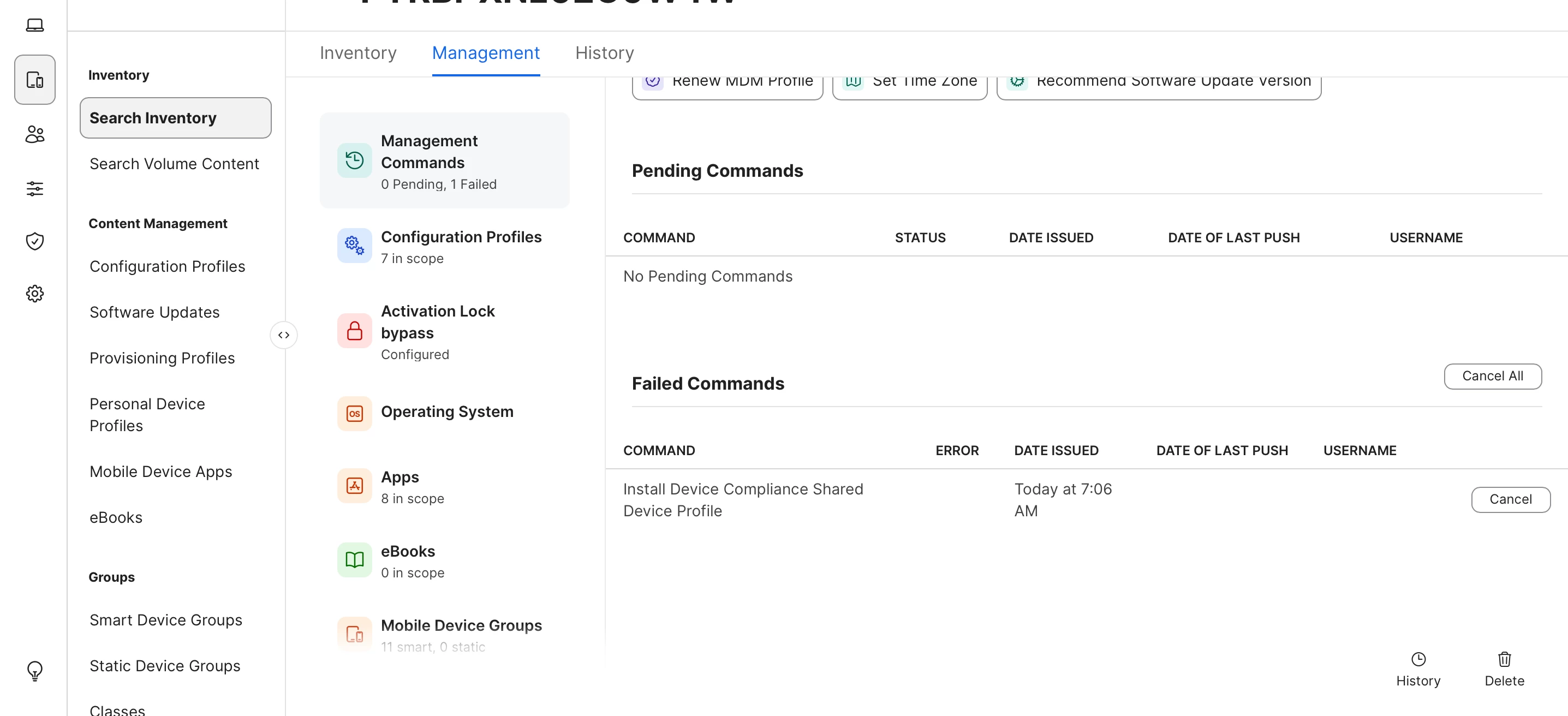 Anyone running into an issue with the Shared Device SSOe profile failing to install on shared iOS devices? I set up the Intune integration with Jamf Pro for both shared devices and standard iOS devices. Standard iOS devices register with Microsoft just fine, but don’t actually perform SSO with the Microsoft apps but they do show as compliant in Entra. I had the Shared Devices registering for about two days and now after wipe, The “Install Device Compliance Shared Device Profile” command fails every time even with a different device. Previous Entra records have been removed. Any ideas of what I could try to fix it or where I can find more detailed logs? History of failed commands had nothing.