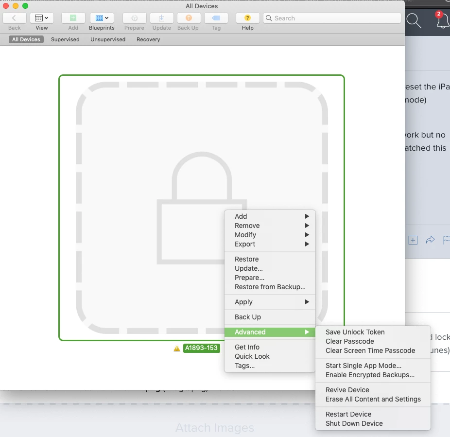 Hi, we've had a couple of student iPads come in where the passcode has been forgotten and the student has reset the iPad, thus stopping any Network access so I can't send a passcode reset command (similar situation for iPad in lost mode) previously we set USB Accessory Access on so that we could share the internet connection from my mac.