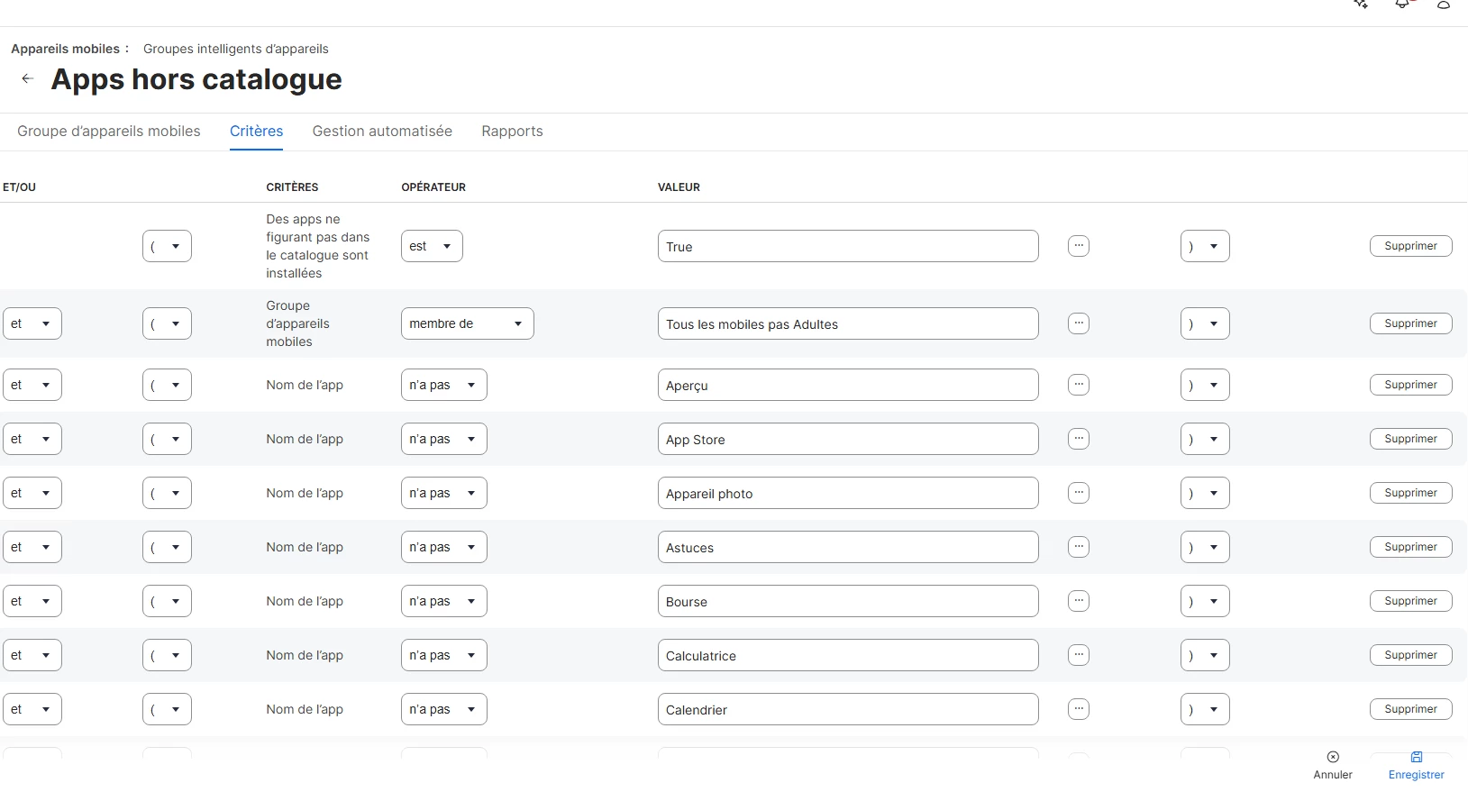 I (like others) use a smart group for students which lists devices that have “Apps Not In the App Catalog Are Installed”, in case some talented student is somehow able to download or sideload apps we don’t allow. I then use a configuration profile to hide all apps except those they downloaded/sideloaded, making their device near useless until they remove the offending app.