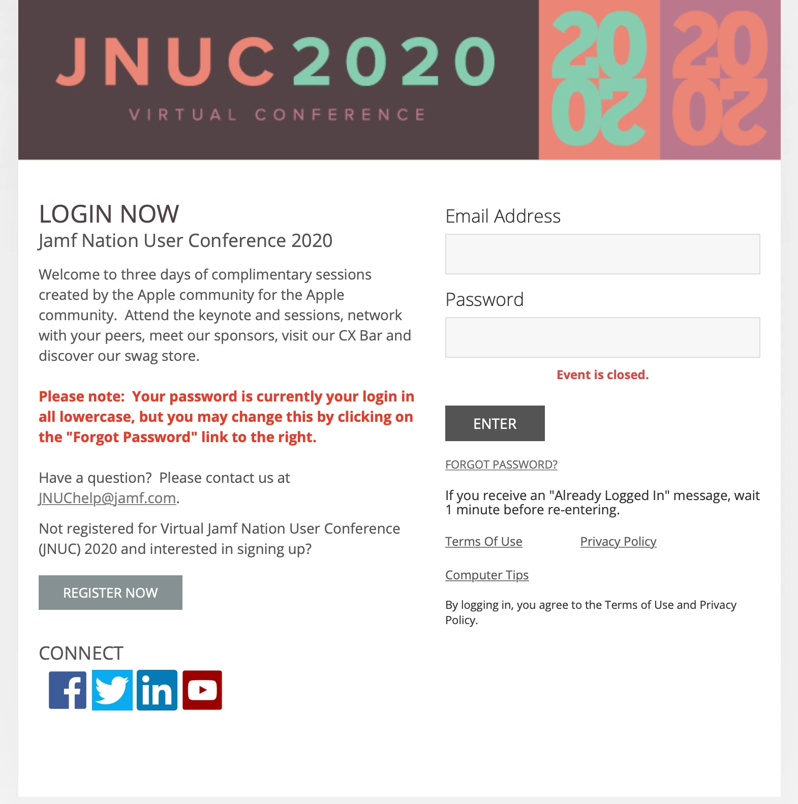 I used the forgot password link to reset my password. Now when I try to login, it fails, and then I see an "event is closed message" 😳 This is really annoying!