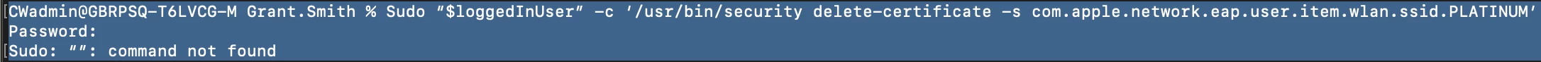 sudo /usr/bin/security delete-certificate -c com.apple.network.eap.user.item.wlan.ssid.PLATINUM