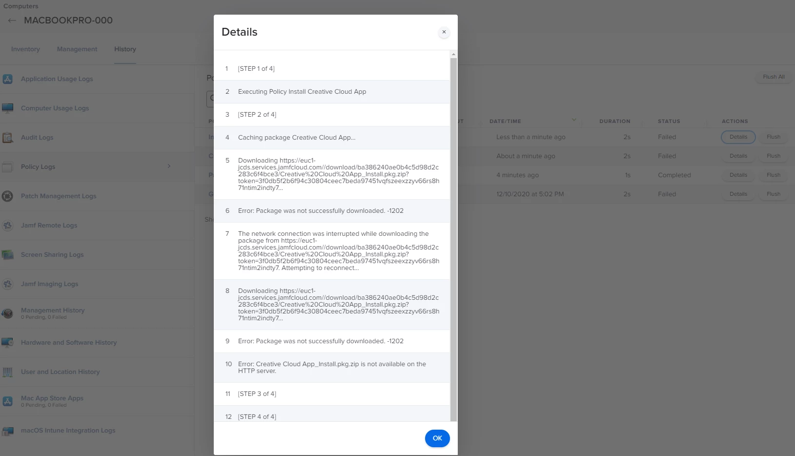 we're trying to deploy some packages in self service, like adobe creative cloud or falcon sensor.