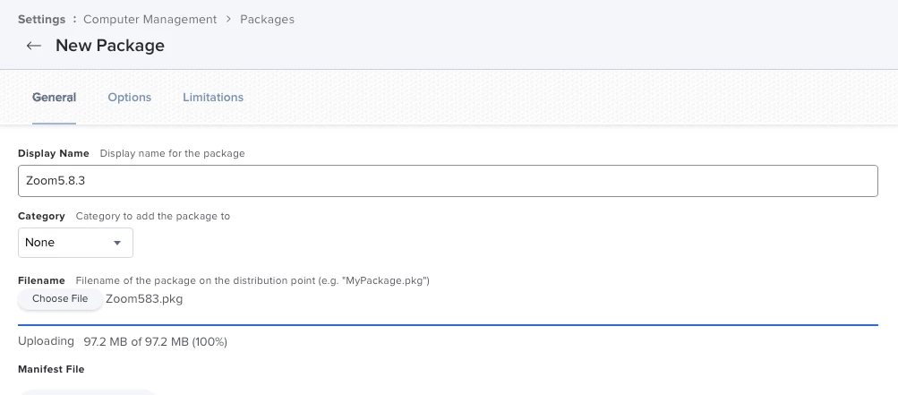 Issues with uploading a new package in web app and jamf admin