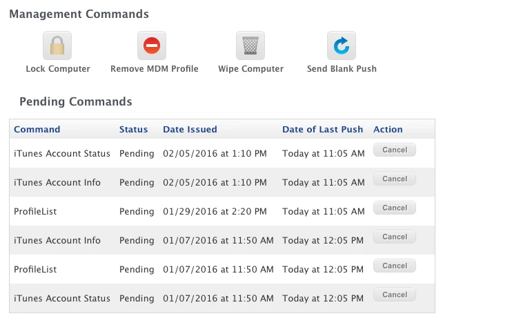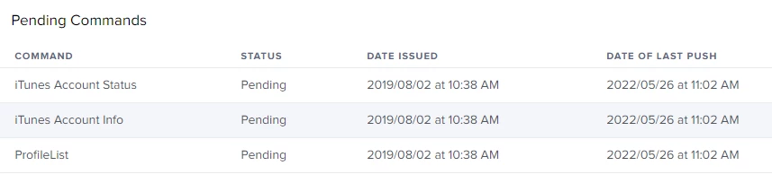 All of my machines have dozens of 'iTunes Account Status' pending commands. Some more than 100. I've cleared them out and they keep coming back. My JAMFSoftwareServer.log gets several of these a second: