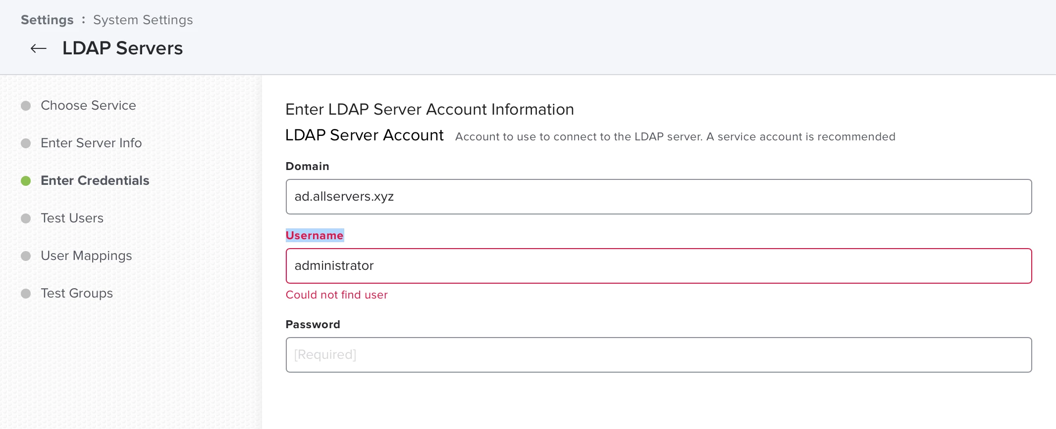 When binding LDAP Servers in Jamf, in the third step "Enter Credentials", after filling in the "Domain" "Username" "Password" information, prompt me "Could not find user".