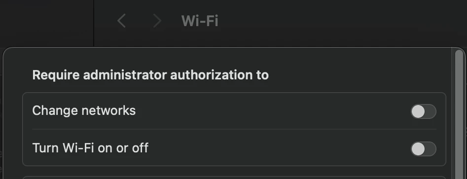 I also ended up removing the Jamf Connect Wi-fi picker UI from the Jamf Connect login window, too. Its not very useful considering its laggy, doesn't support 802.1x EAP-TLS and doesn't support captive portals. However, disabling the Wi-fi picker still doesn't prevent the pop-up if “Require admin...” is enabled.