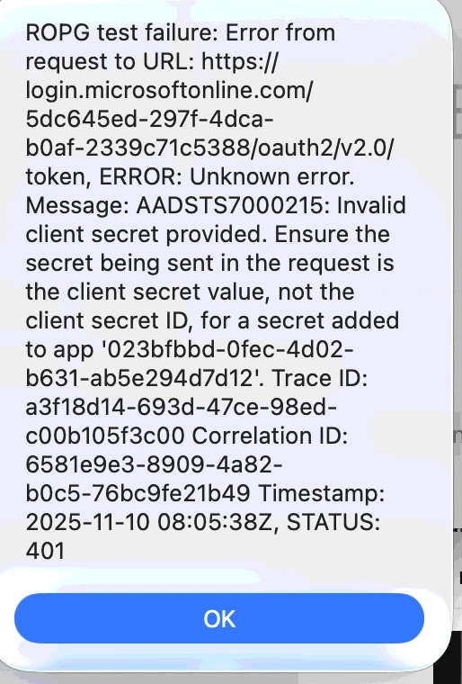 I am trying to implement JAMF Connect in our organization. I was able to successfully configure the OIDC, but while testing the ROPG, I am getting the attached error.
