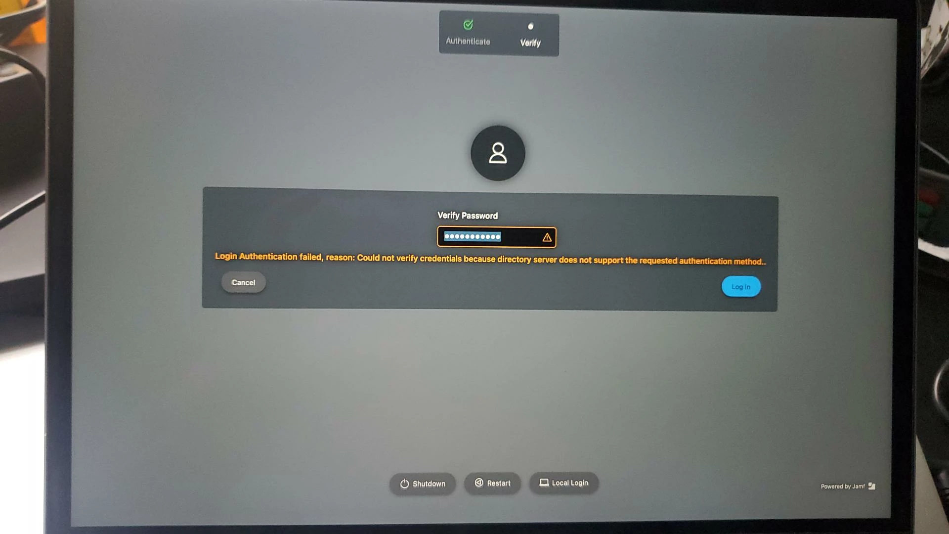 So I'm running into an issue where I have a DEP machine, I accept the profile and I go to log in as the user, it accepts my AzureAD password, and then when I re-enter it I get the attached.