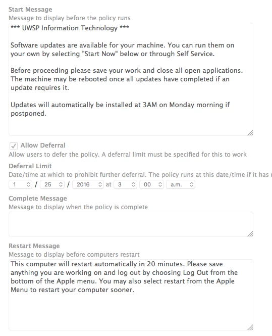 -description This computer will restart automatically in 20 minutes. Please save anything you are working on and log out by choosing Log Out from the bottom of the Apple menu. You may also select restart from the Apple Menu to restart your computer sooner.