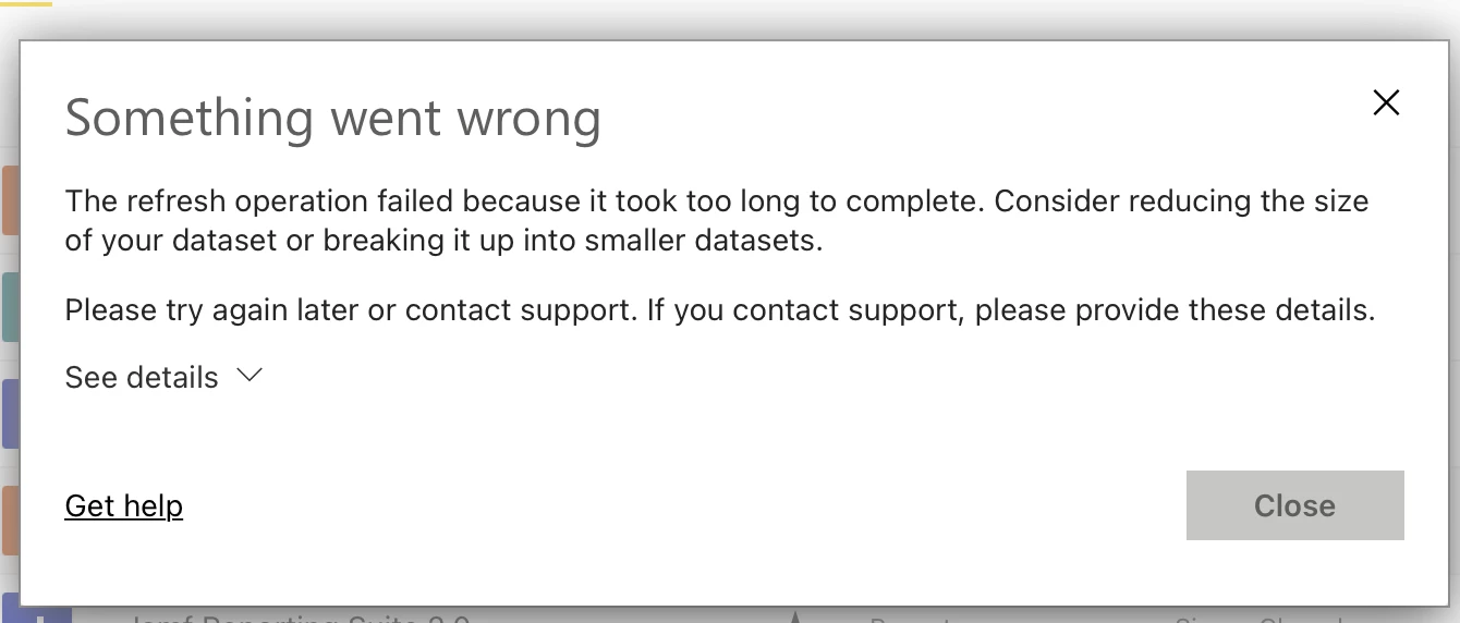 Has anyone had success with using the Powerbi Connector? I've managed to pull all data in, created a couple of small dashboards, but it never seems to refresh. Even a manual or scheduled refresh ends up timing out after a few hours.
