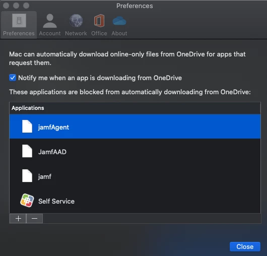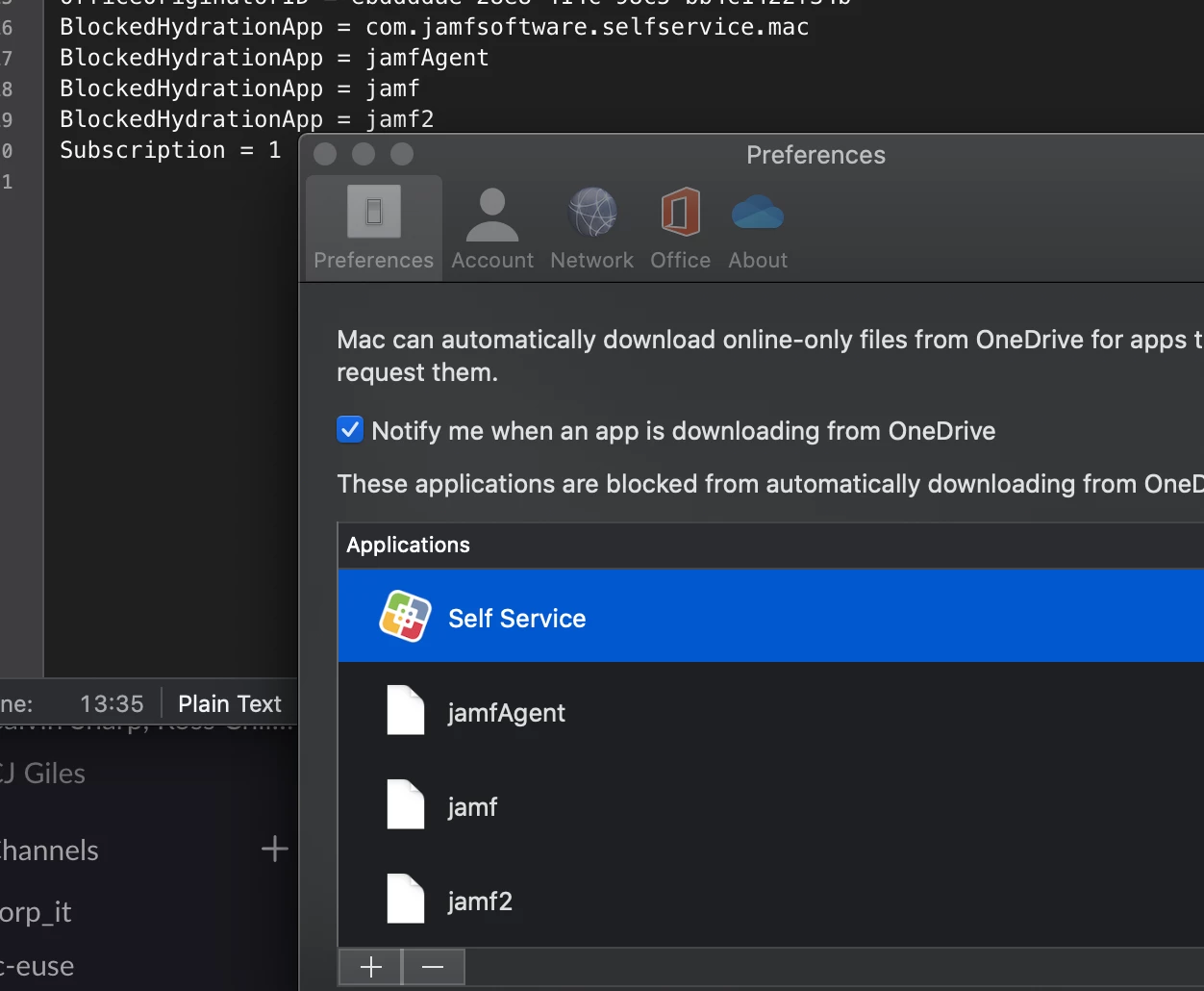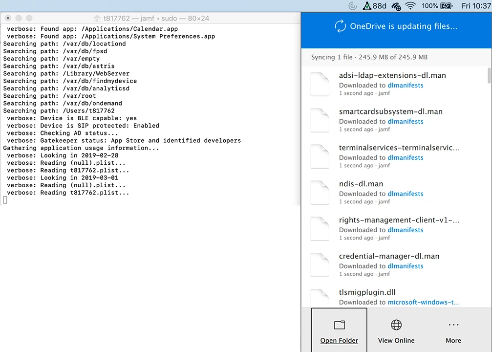 When running "sudo jamf recon" to update the inventory when it gets to "Gathering application usage information..." I get a notification from OneDrive saying "jamf" is downloading files from OneDrive, would you like to block, allow etc.