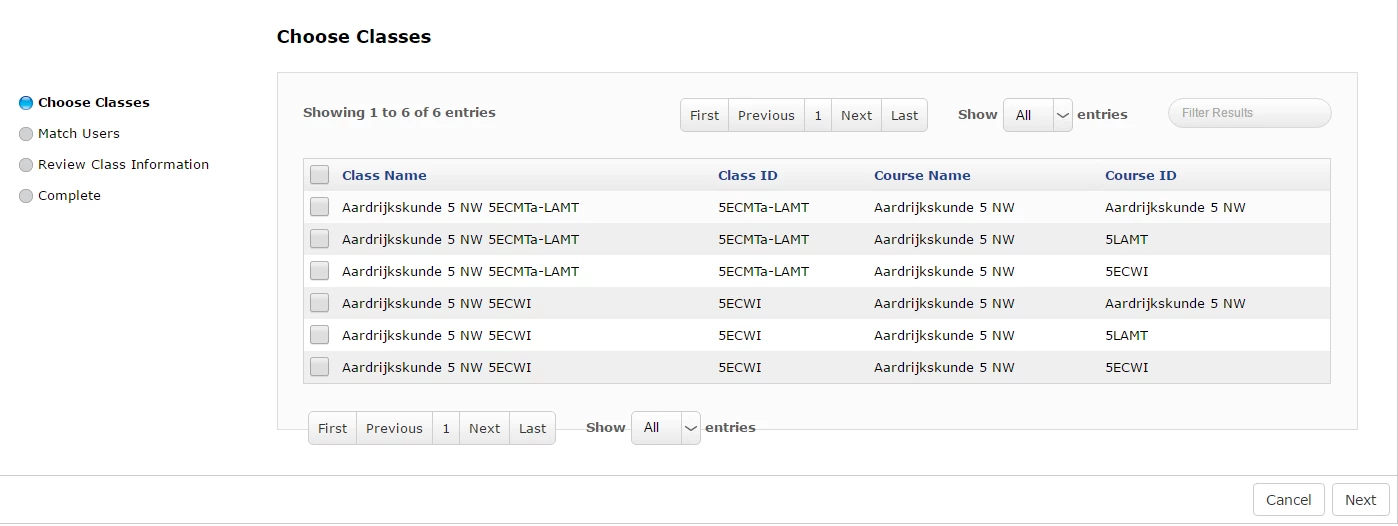 Now, when asking JSS to import classes, it lists 3 instances of every class, each linked to a different course ID (see screenshot). But there is only 1 course ID in ASM!