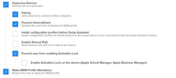I'd love to be able to block access to the settings entirely or at least block them from making major changes like this. I have checked our configuration profile but don't see anything about this.