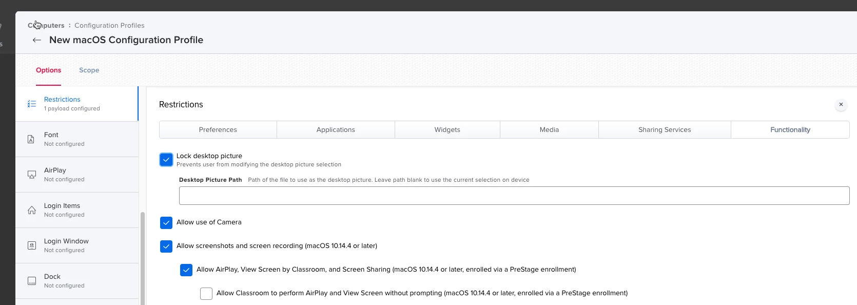 I know I can lock the desktop pic using the Restrictions profile, but does anyone know if / how I could limit their choices on what wallpaper they can pic and choose from?