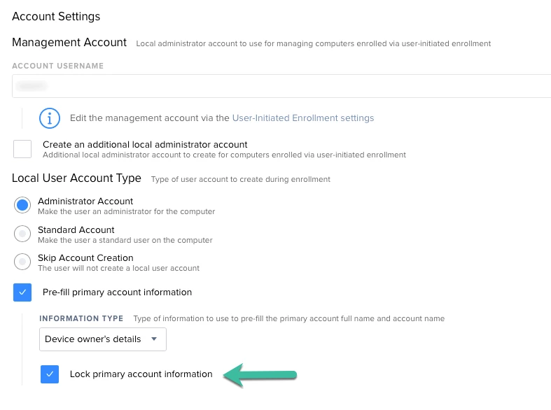 Is anyone able to get "Lock Primary Account Information" to work in PreStage Enrollment? I have mine setup to use device owner's details after prompting the user for their AD credentials, but once it gets to the account creation screen the user is able to edit their account name and password.