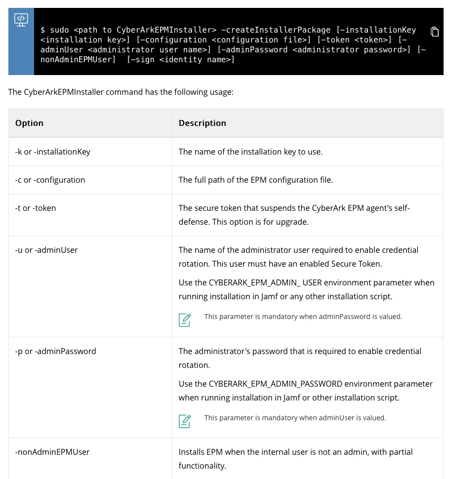 Also there is this previous JAMF Nation post from 2020 with comments from 2021 indicating working install solutions. Re: CyberArk EPM Deployment - Jamf Nation Community - 231644