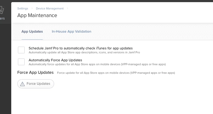 Schedule Jamf Pro to automatically check iTunes for app updates.