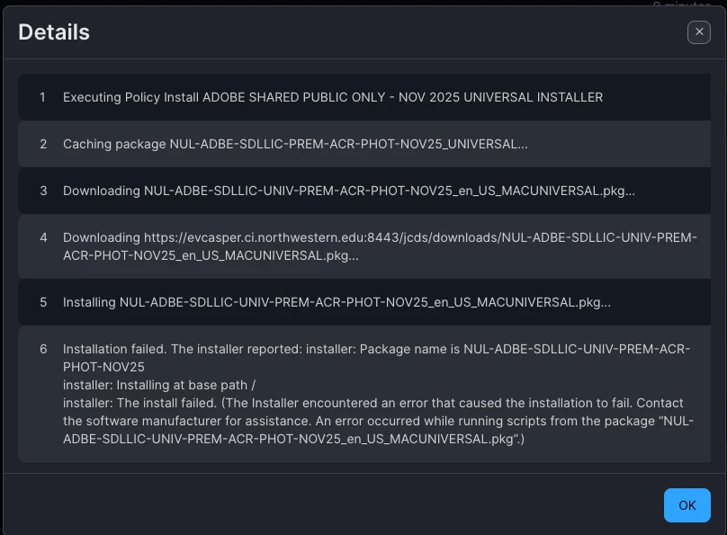I’m fairly new to Jamf and inherited a Jamf Pro instance that I’m having to update/change as we get new devices and new software. We have Adobe Creative Cloud pushed to all computers using Mac Apps, but need the Shared License pushed to just our public computers. Right now we have a policy to install the Shared License, but it fails each time it runs. I’m assuming this is because it’s already installing the regular license through Mac Apps.