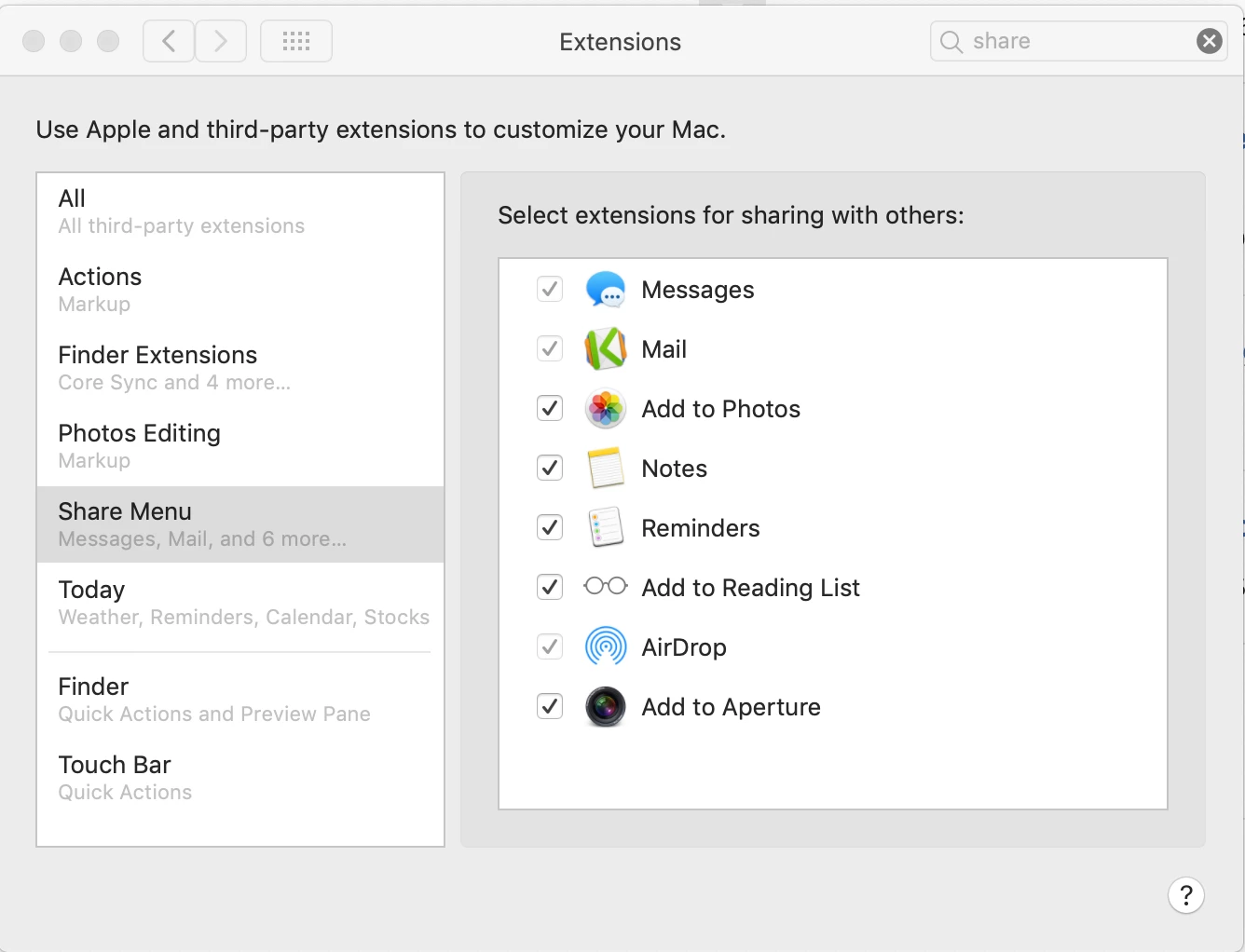 I seem to be able to get the Share integration to install but I think that Jamf is blocking the ability to use the function and it is grey'd out in the pref pane. The sharing to mail simply does not appear in any app or finder use case. The developer says they have not seen this problem with their software on 10.14.x