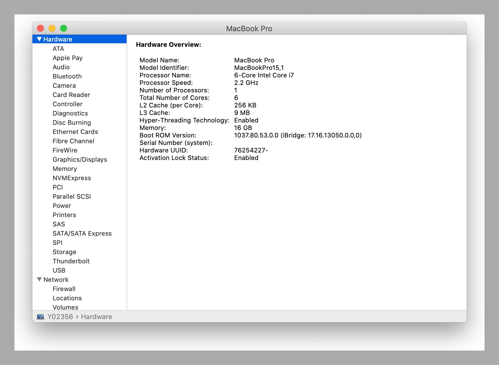 % /usr/sbin/system_profiler SPHardwareDataType | awk '/Activation Lock Status/{print $NF}'