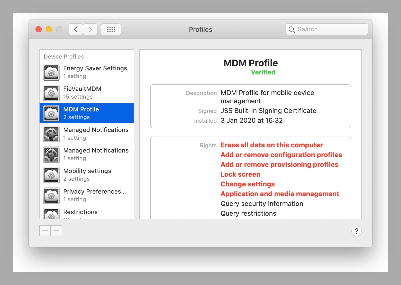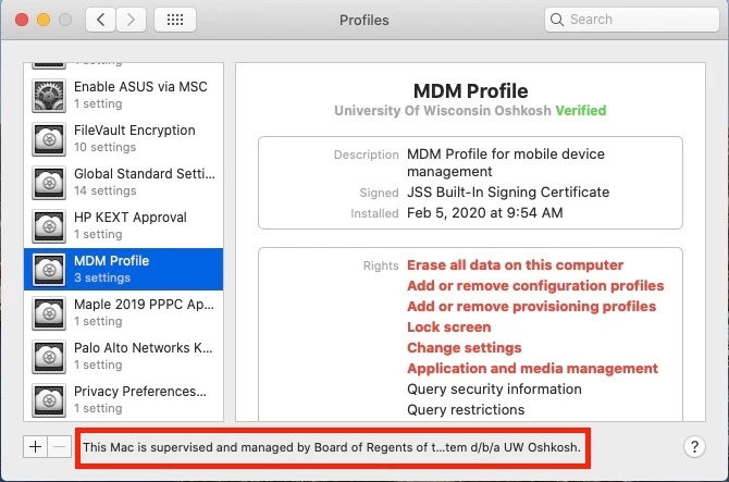 @nelsoni I see above you have highlighted a piece of the MDM profile showing the profile is being managed, next to +/- buttons. Is there some special way you are making this appear? I don't see it myself in my MDM profile but would prefer to have that language appear to inform users.