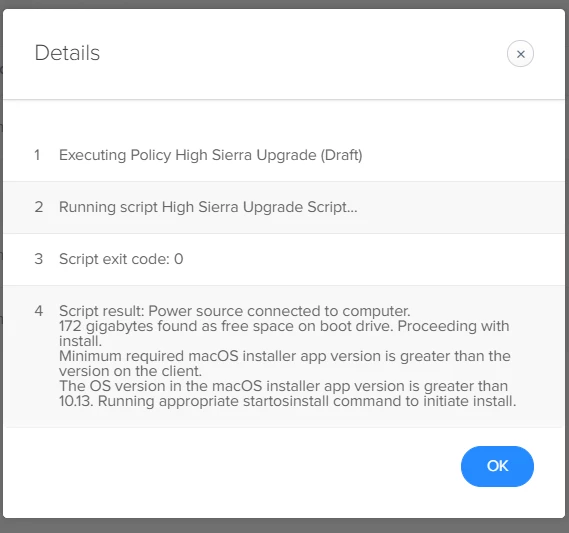 I'm using the macOSupgrade script with 10.13.4 but it just puts my test Mac into a download loop. It will download the High Sierra installer to the Applications folder. Then the installer is deleted and downloaded again and again. Any ideas?