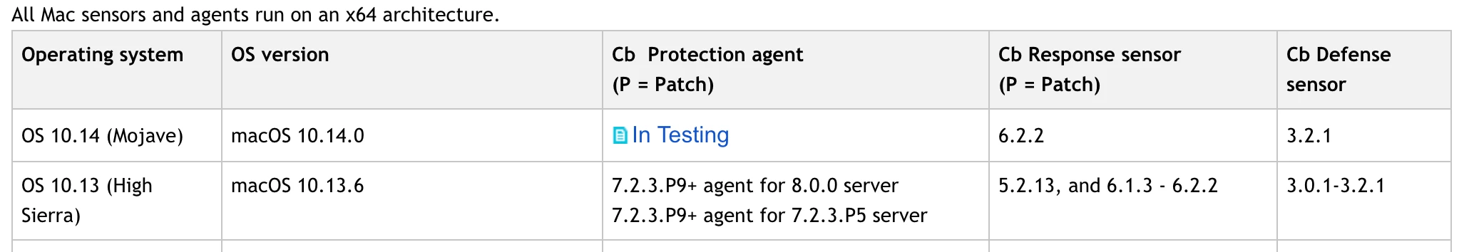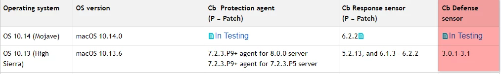 Updated my machine for testing purposes to 10.14.0 and like also in the BETA's our Carbon Black Defense sensor is not working on 10.14.0 and gets in Bypass mode.