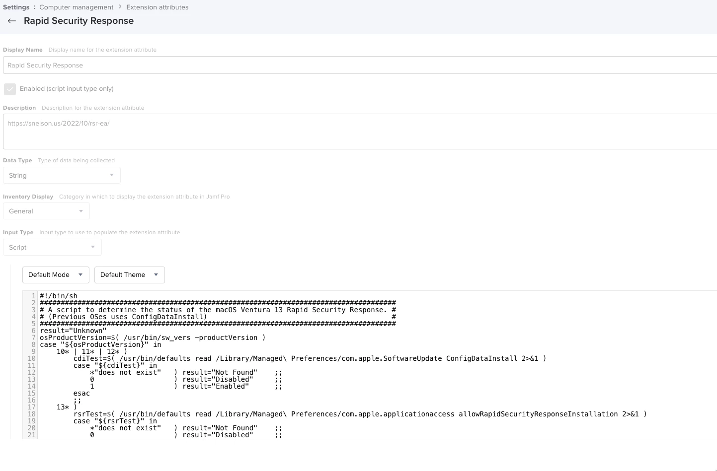 /usr/bin/defaults read /Library/Managed\\ Preferences/com.apple.applicationaccess allowRapidSecurityResponseInstallation
