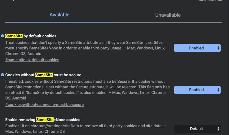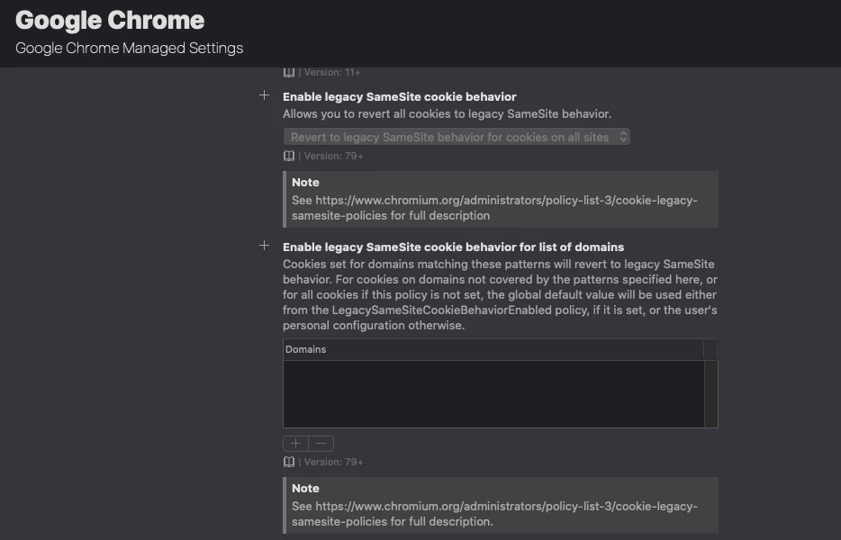 LegacySameSiteCookieBehaviorEnabledForDomainList - link text
