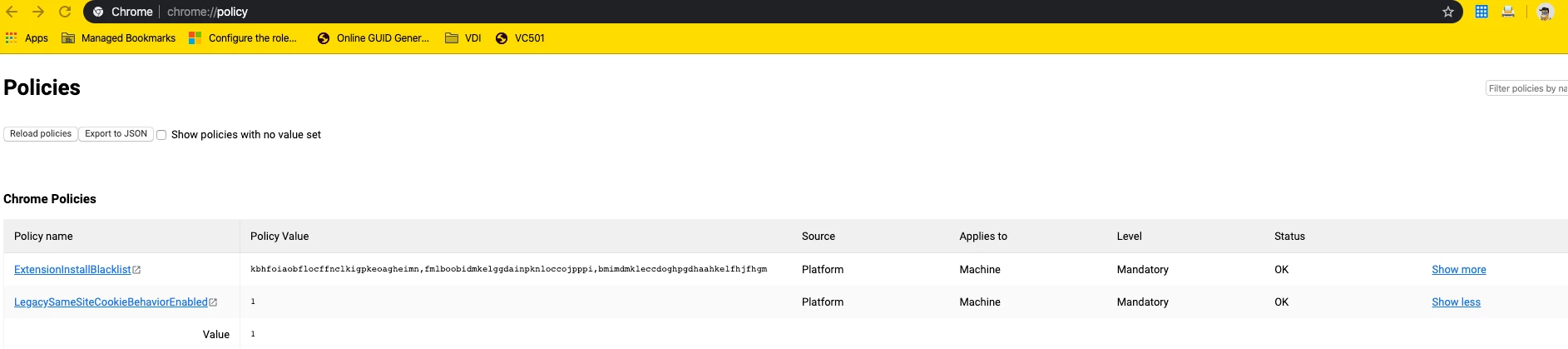 3) Scoped and deployed the Configuration Profile to a test machine and confirmed that the com.google.Chrome.plist updated with the new SameSite Cookie values in Library/Managed Preferences and Library/Manage Preferences/User