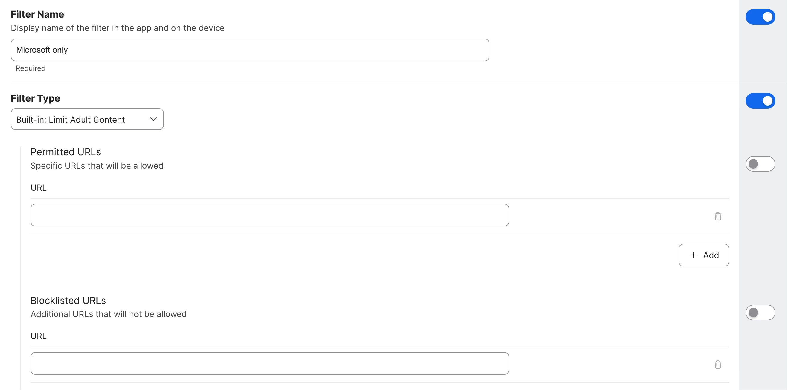 You would just add the URL of the website, you can make it a “Catch-all” by ex. https://microsoft.com it should allow every website under that umbrella.