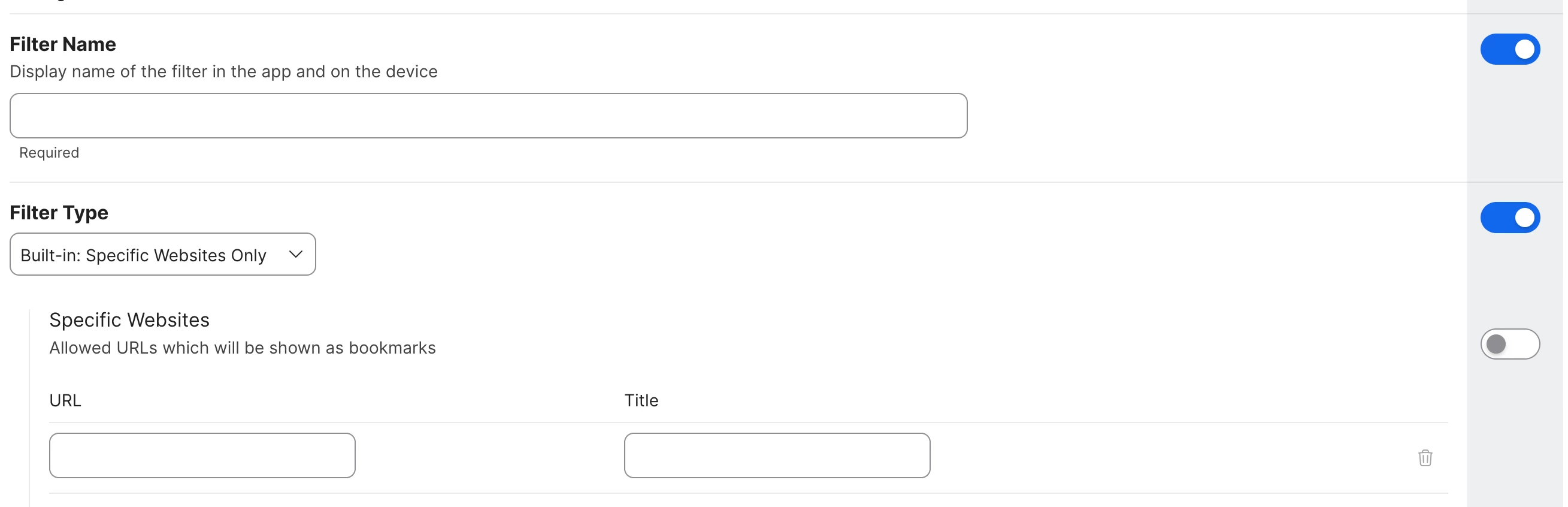 Filter name does not matter, it depends on what you are trying to allow, in Jamf it either ask you to connect to an external service, block explict sites, or allow only specific sites. The way I would go about it depending on the amount of websites you want to give access to is to “Built-in” and just add the list to only specific sites you want giving access to, or “Explict Content” and block sites as you come across them.