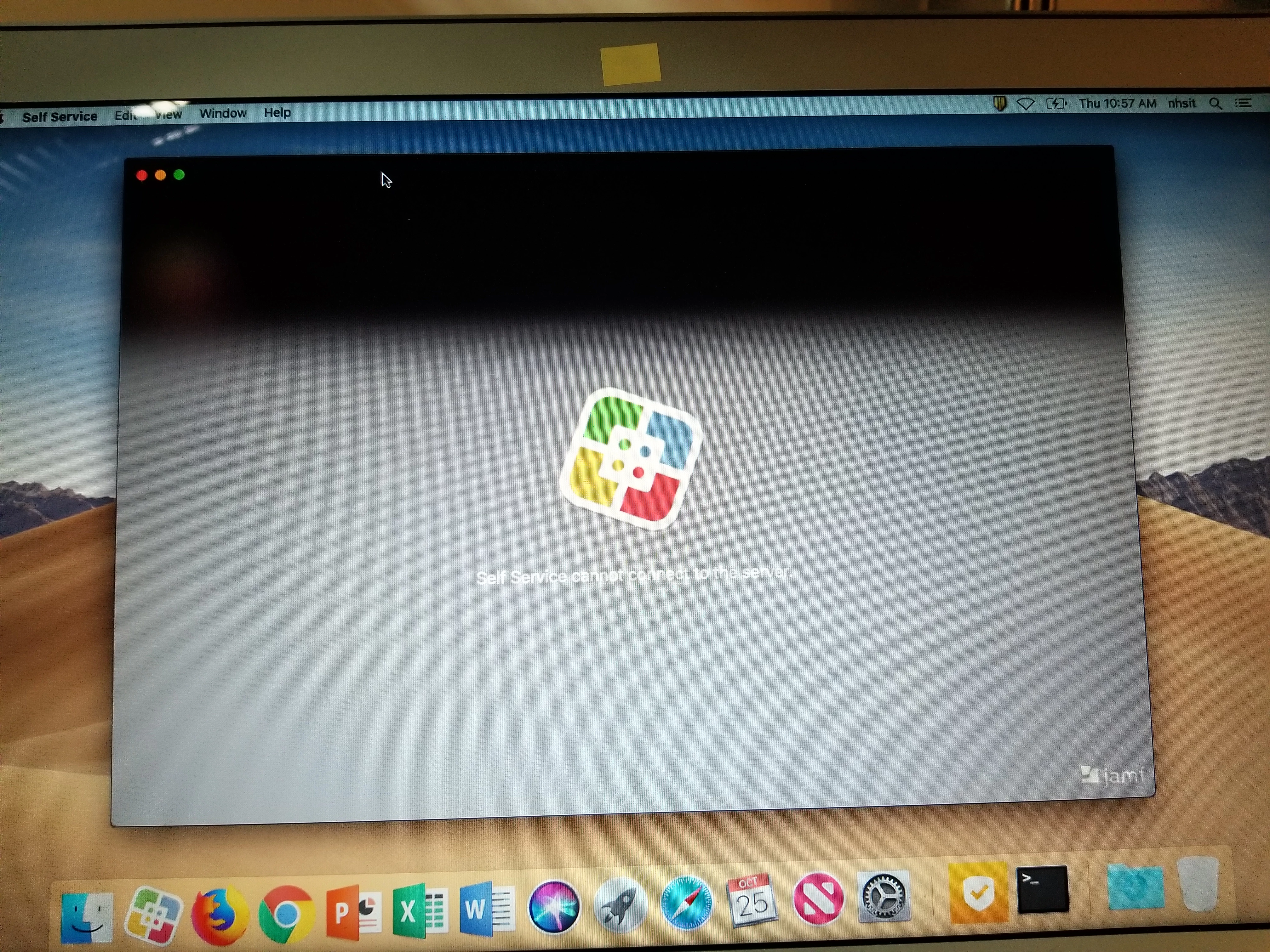 previously it was fine, was able to run self service policies, all of a sudden now getting 'self service cannot connect to the server'