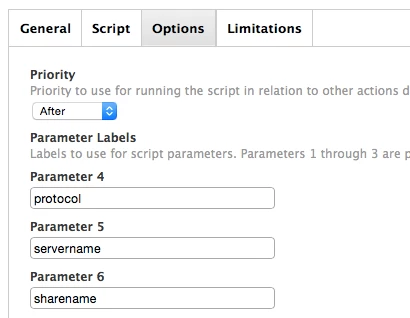 Once thats in place you can re-use the script in a policy, setting the relevant options:
