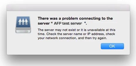 When there's no network available, being the profile still there, an error message appears in the Finder, as the server is obviously not reachable