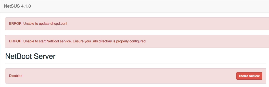 I just keep hitting roadblocks with this set up. Now, I'm getting this error message when I try to Enable NetBoot: