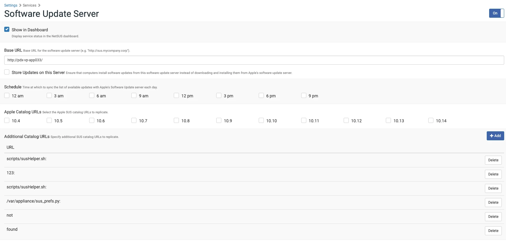 We recently setup NetSUS on an Ubuntu VM that we'd like to use to push out certain updates to our users. The install seemed to go fine: Installed the service, changed the IP to the Static IP dedicated to it, and changed the login user passwords. However, when I try to sync the System Update Server manually, nothing happens.